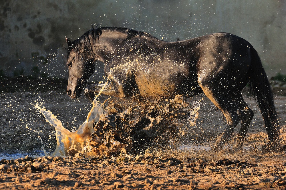 Smaller puddles or large pools of standing water are a great place to paw and splash water enough to temporarily scare flies from under the horse and off the legs. The quest to dig out a water source and a little playing with the water puddles teaches this to them, and the water contact to the abdomen touches the itch sensation just enough for a rare comforting contact underneath. The right puddle will prompt a good roll for the cooling water or the mud coating to help build a shield from flies.